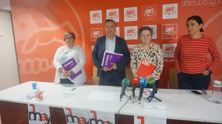 (CCOO Málaga) Bajo el lema “Proteger lo conquistado, ganar el futuro”, representantes de ambas organizaciones sindicales han realizado una rueda de prensa para presentar la próxima movilización del 1 de mayo y han hecho un llamamiento a la participación de la mayoría social en Málaga (salida Muelle Heredia, esquina Alameda de Colón a las 11:30h).