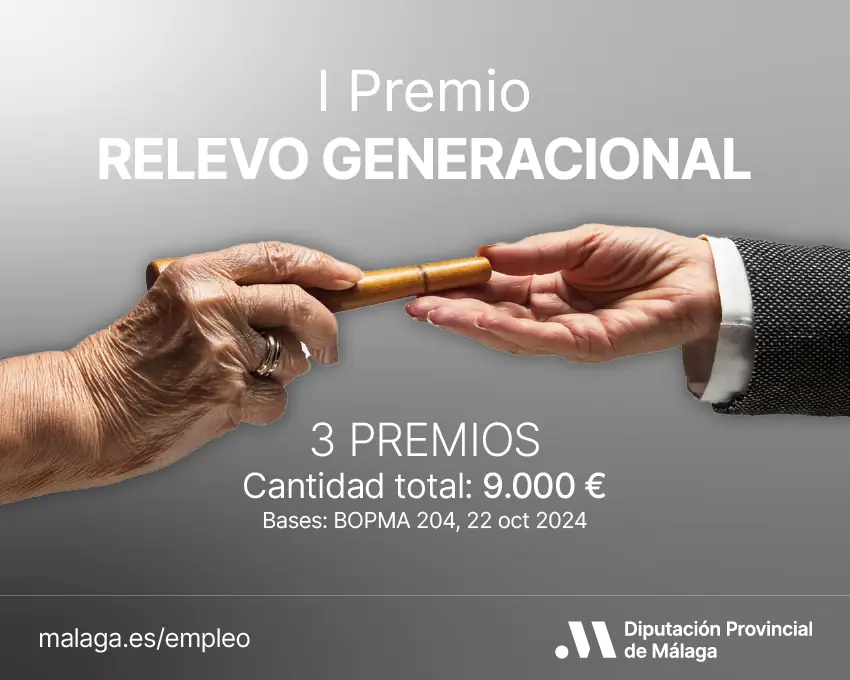 La Diputación de Málaga ha abierto la convocatoria del I Premio al emprendimiento de personas jóvenes a través del relevo generacional, uno de los principales retos a los que se enfrenta la actividad profesional y empresarial en el mundo rural. El premio, en régimen de concurrencia competitiva, va dirigido a jóvenes menores de 35 años que realicen actividades económicas que den continuidad al empleo, a través del relevo generacional, en municipios menores de 20.000 habitantes de la provincia de Málaga.